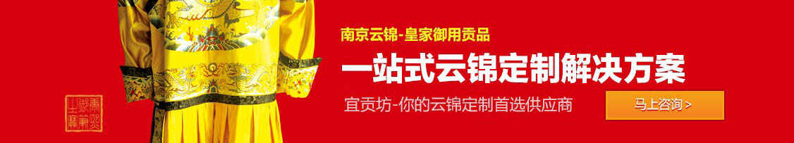南京宜貢坊云錦文化科技有限公司成立于二OO一年,場地面積10000㎡,致力于做中國知名的云錦,宜貢坊云錦文化科技有限公司座落于江寧開發(fā)區(qū)。做為江蘇云錦文化科技品牌之一,南京宜貢坊擁有雄厚的技術力量和實力,現有大型傳統花木樓織機幾十臺,織造師、研究設計人員數百人。公司擁有直屬北京、深圳、上海辦事處和近千家緊密經銷商、合作商;產品在南京中央商場、新百、上海八百伴、上海友誼商場,泰州金鷹等全國多家大型商場均有專柜。